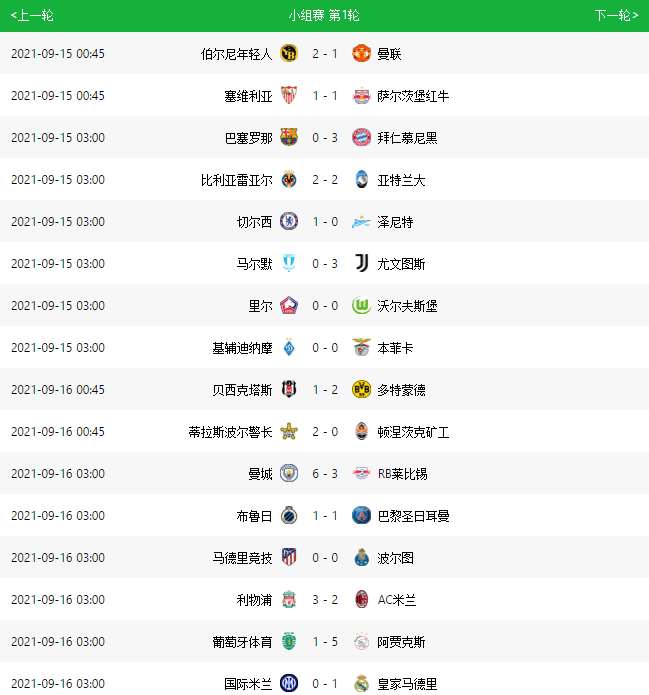 24直播网9月16日讯 ,欧冠首轮落下帷幕,32支参赛球队也都完成了在本赛季欧冠正赛的亮相,精彩的比赛不少,其中不乏有第一场曼联被年轻人逆转决赛、拜仁大胜巴萨、尤文赛季首胜、曼城莱比锡单场9球盛宴、利物浦逆转AC米兰、阿莱大四喜、皇马绝杀国际米兰,可以说是酣畅淋漓,球迷们直呼过瘾。