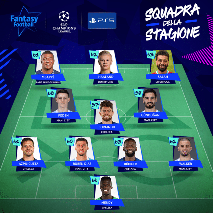 24直播网讯 北京时间5月30日,本赛季欧冠最佳阵容出炉,姆巴佩、萨拉赫、哈兰德组成锋线三叉戟,欧冠决赛MVP坎特落选。