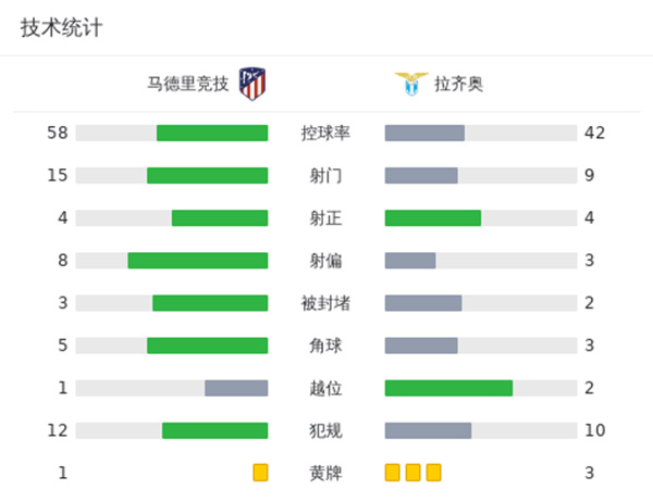 关键事件: 第5分钟,马竞打破僵局!利诺前场反抢成功左路横传禁区格列兹曼点球点附近推射破门,马竞1-0拉齐奥。