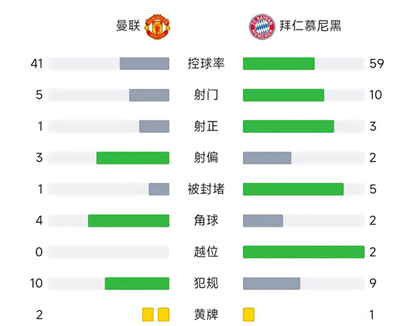 关键事件: 第70分钟,科曼得球交给格雷茨卡,传球后皮球反弹至凯恩脚下,凯恩不停球直接外脚背做球,科曼单刀破门!拜仁1-0领先曼联↓