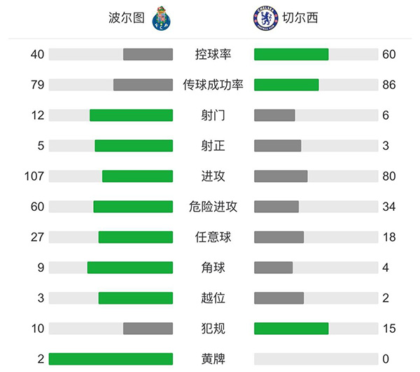 第84分钟,切尔西扩大比分。波尔图后场失误,科罗纳停球被奇尔维尔断下。奇尔维尔突入禁区,过掉门将打空门得手,波尔图0-2切尔西。