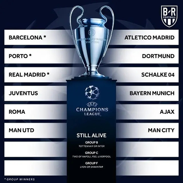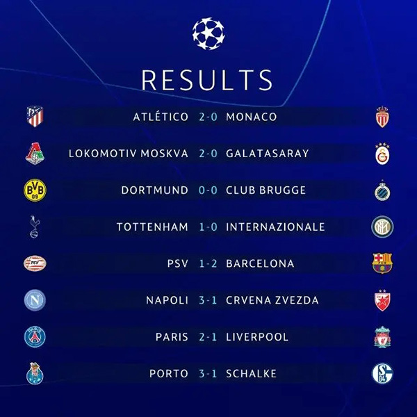 24直播网12月01日讯 北京时间11月29日凌晨,2018-19赛季欧洲冠军联赛小组赛结束了第五轮的争夺。16支出线球队已经有12支确定,皇马、巴萨、拜仁、曼联、尤文等豪门提前晋级,利物浦、巴黎圣日耳曼等队将在最后一轮激战争取最后的出线机会。国际米兰和热刺也只有一队可以晋级淘汰赛。