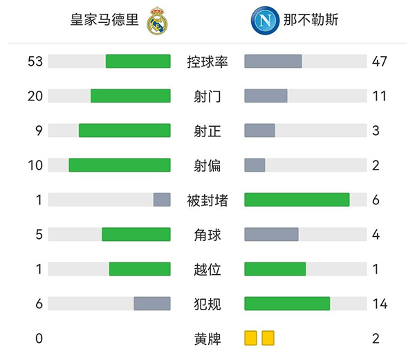24直播网讯 :北京时间11月30日04:00,欧冠小组赛C组第5轮焦点战,皇家马德里坐镇主场伯纳乌球场迎战那不勒斯,本场主裁判为勒泰西耶。上半场,乔瓦尼-西蒙尼首开记录,罗德里戈内切劲射闪电扳平,贝林厄姆头槌助皇马反超。下半场,安古伊萨小角度爆射扳平,随后小将尼科-帕斯远射破门,贝林厄姆助攻何塞卢锁定胜局。最终,皇马4-2双杀那不勒斯,锁定小组头名。