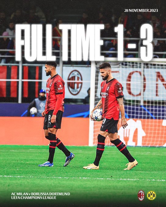 24直播网11月29日讯 ,欧冠小组赛F组结束了第5轮的两场角逐,多特蒙德客场3-1力挫AC米兰,而大巴黎则在主场1-1绝平了纽卡斯尔。