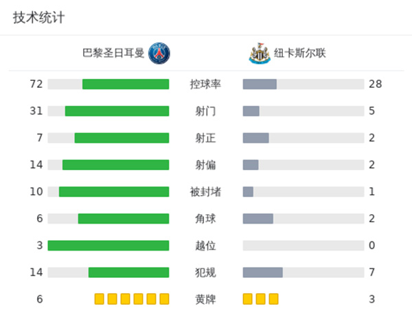 最终,巴黎主场1-1纽卡仍居小组第2。