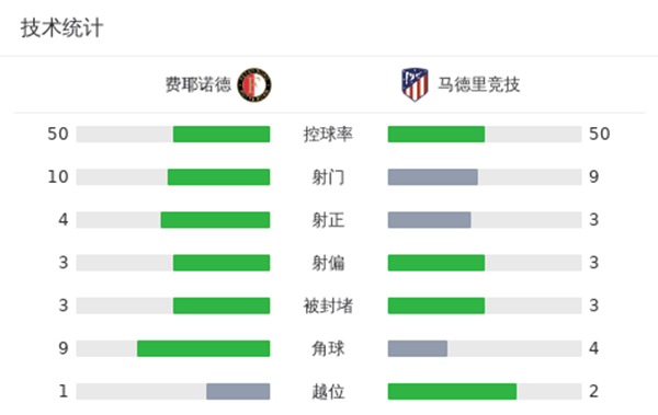 24直播网讯:北京时间11月29日欧冠 小组赛 第5轮,费耶诺德主场对阵马德里竞技。上半场,略伦特传中造成海特勒伊达自摆乌龙,莫拉塔单刀被扑。下半场,埃尔莫索小角度破门,魏费尔扳回一分,圣地亚哥-希门尼斯头球自摆乌龙, 最终,马竞3-1客胜费耶诺德提前1轮晋级淘汰赛。