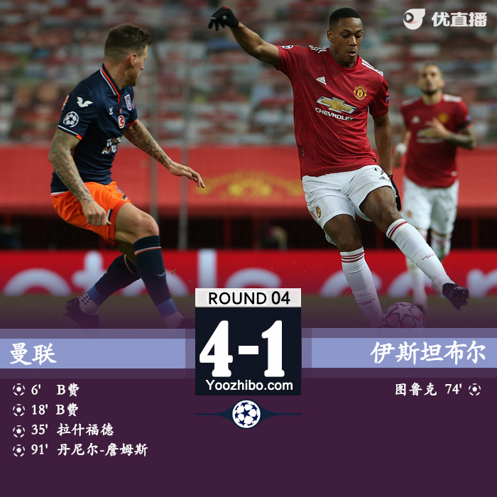 北京时间11月25日凌晨4:0024直播网讯,2020-2021赛季欧冠小组赛H组第四轮继续进行,曼联坐镇主场迎战来访的伊斯坦布尔。上半时比赛B费梅开二度,拉什福德造点并亲自主罚一蹴而就扩大比分。下半时比赛图鲁奇任意球直接破门为客队追回一球,丹尼尔-詹姆斯最后时刻破门锦上添花。最终,曼联4-1击败伊斯坦布尔成功复仇。