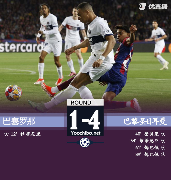 24直播网讯:北京时间4月17日欧洲冠军联赛 1/4决赛次回合,巴塞罗那主场对阵巴黎圣日耳曼。上半场,亚马尔助攻,拉菲尼亚破门。随后风云突变,阿劳霍作为最后一名防守球员拉倒巴尔科拉被主裁判直红罚下。巴尔科拉传球,登贝莱扳平比分。下半场,维蒂尼亚远射帮助巴黎扳平总比分。坎塞洛铲倒登贝莱送点,姆巴佩主罚命中。终场前,姆巴佩在反击中再下一城锁定胜局。全场比赛结束,巴黎客场4-1战胜十人巴萨,以总比分6-4晋级欧冠四强。