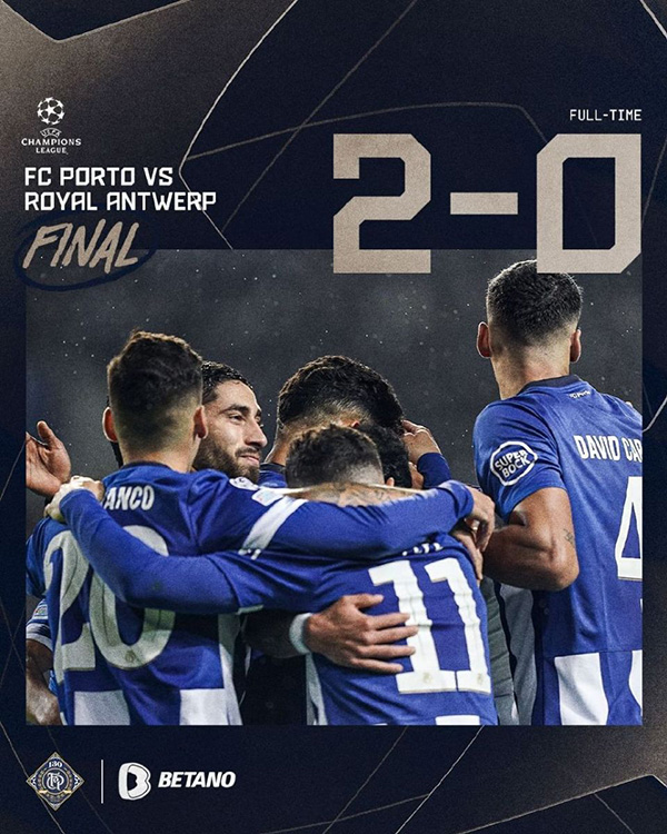 补时第1分钟,当时小孔赛桑右路传中,已经40岁的佩佩依然勇猛冲到对手禁区,高高跃起力压对手后卫,头球轰开了安特卫普的球门。凭借这场胜利,波尔图积9分追平了小组头名巴萨。