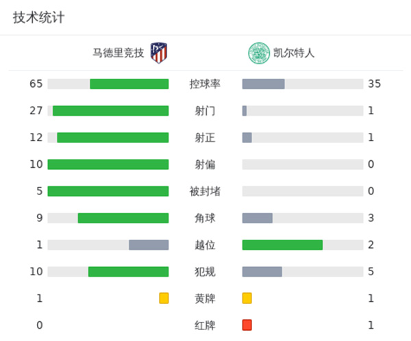 马竞6-0凯尔特人 格列兹曼双响莫拉塔2射1传