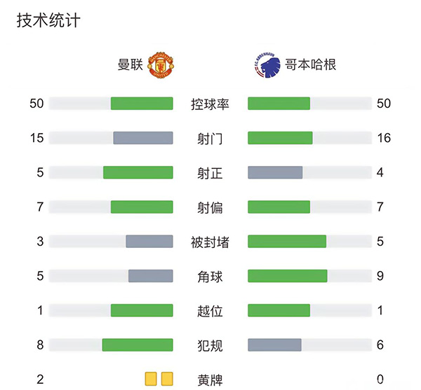 全场比赛结束,最终曼联1-0哥本哈根。