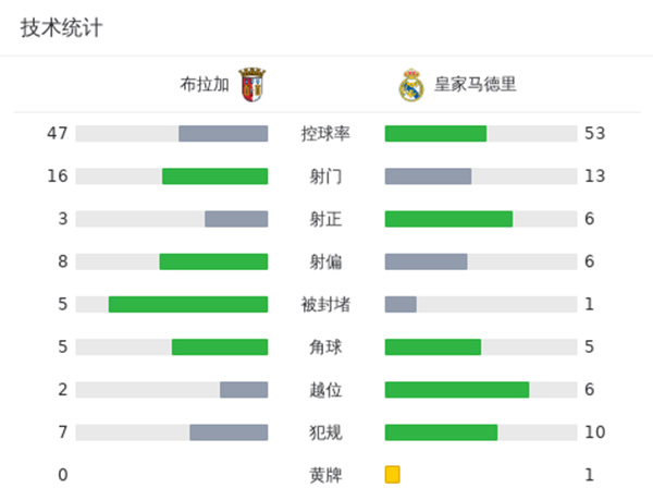 关键事件: 第15分钟,纳乔后场长传,维尼修斯左路摆脱萨阿特彻后横传门前,罗德里戈包抄铲射入网,布拉加0-1皇马!