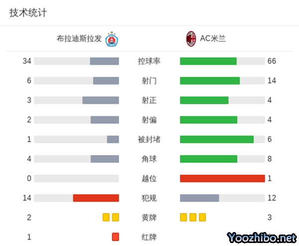 最终AC米兰3-2战胜布拉迪斯拉发。