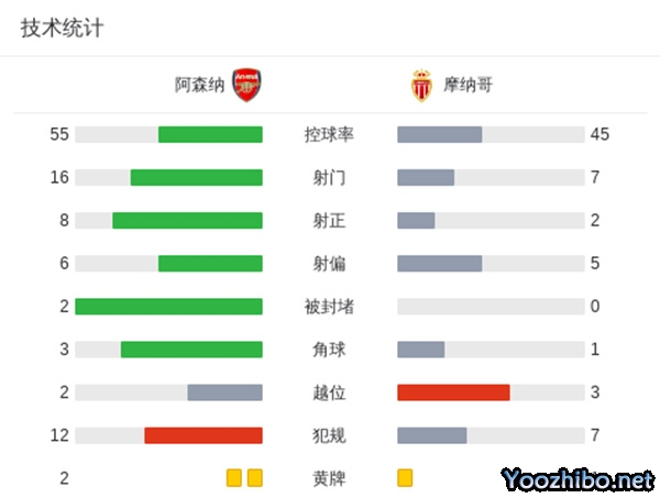 阿森纳3-0摩纳哥2连胜升第3 萨卡2射1传热苏斯助攻+屡失良机