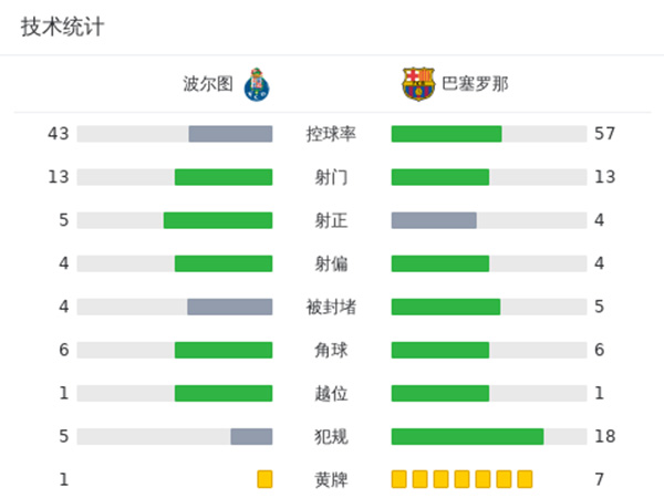 最终巴萨客场1-0波尔图两连胜居榜首。