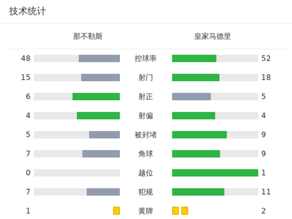 关键事件: 第19分钟,那不勒斯打破僵局!左路角球开到禁区纳坦头球顶在横梁第二点厄斯蒂高头球补射破门,那不勒斯1-0皇马。