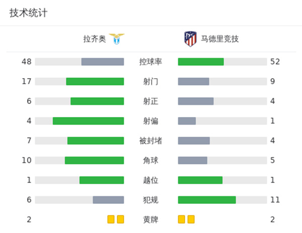 全场比赛结束,马竞1-1拉齐奥。