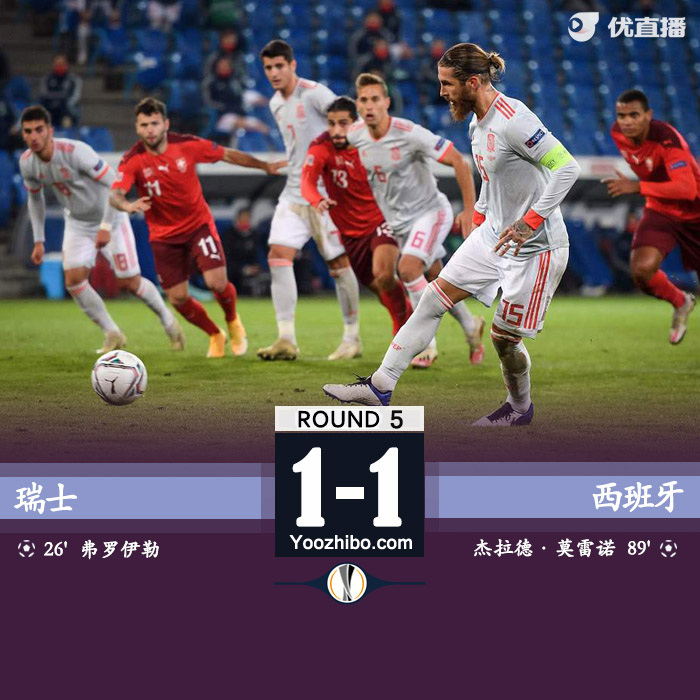 24直播网讯:北京时间11月15日凌晨3时45分,2020-21赛季欧国联A级别D组第五轮一场焦点大战拉开帷幕,瑞士坐镇主场圣雅各布公园球场迎战西班牙。上半场比赛,弗鲁勒在第26分钟时帮助瑞士打破僵局。下半场比赛,拉莫斯两度罚丢点球,埃尔韦迪在第78分钟吃到红牌。第89分钟,莫雷诺门前抢点射门将比分扳平。最终全场比赛结束,西班牙以1-1的比分战平了瑞士。