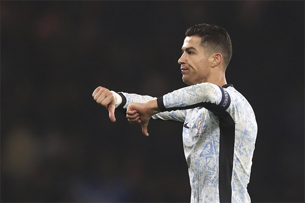 他先是摊手抗议,随后在遭到拒绝后,不满甩手并且鼓掌嘲讽主裁的判罚。最后,C罗没有像其他葡萄牙球员一样与苏格兰球员拥抱致意,也没有向现场球迷致谢,而是怒气冲冲、头也不回的走回更衣室。