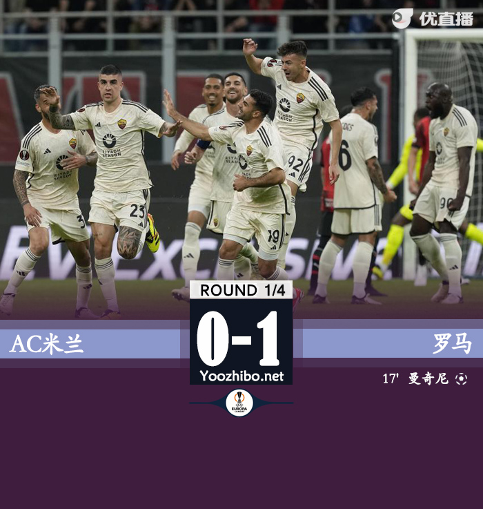 24直播网讯:北京时间4月12日欧联1/4决赛首回合,米兰主场对阵罗马。上半场,赖因德斯两次打门均被扑,沙拉维推射变线被迈尼昂精彩扑救,迪巴拉角球助攻曼奇尼头球破门,吉鲁两次头球攻门均被卢卡库解围;下半场,赖因德斯再度两次射门依旧被扑,阿德利弧线球直奔球门被解围,吉鲁近距离打门中楣错失绝平机会。最终罗马客场1-0击败米兰,一周后双方将交换主客场再战。