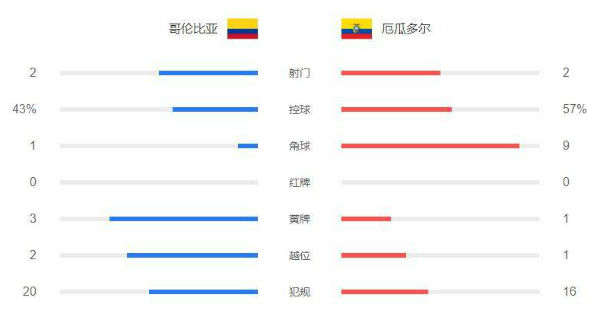 半场战罢,哥伦比亚暂时1比0领先厄瓜多尔。