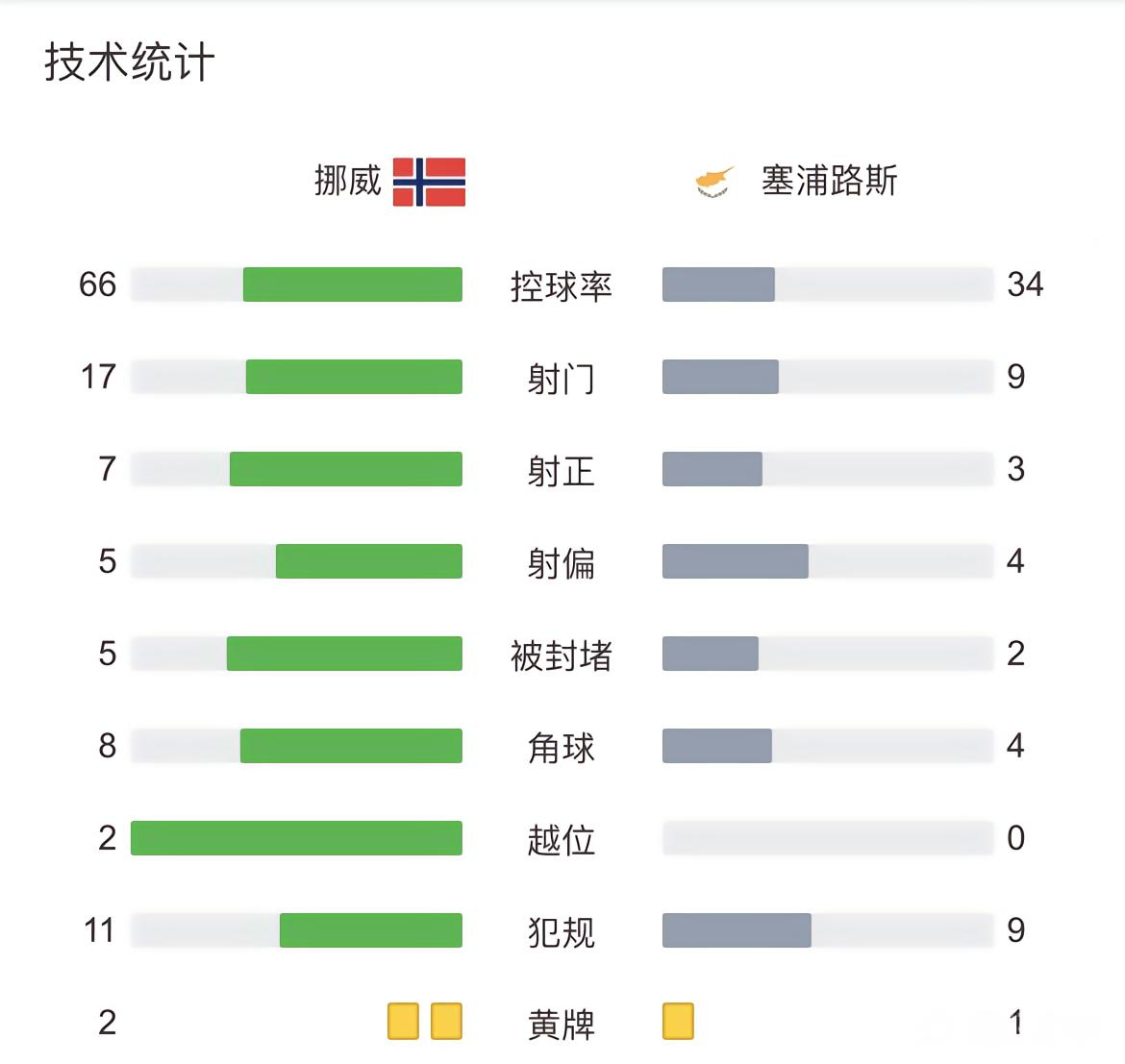 全场比赛结束,挪威3-1击败塞浦路斯。