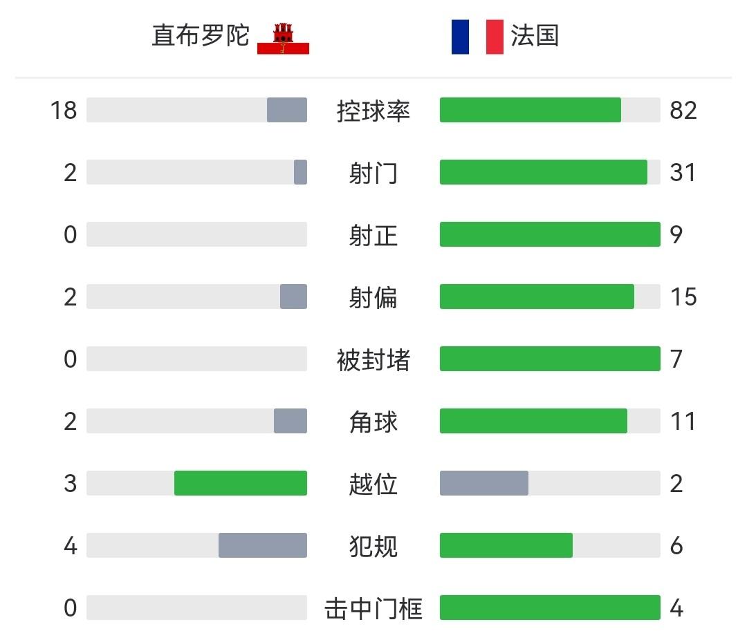关键事件: 第2分钟,科曼右路摆脱后传中,吉鲁抢点头球攻门入网,直布罗陀0-1法国!