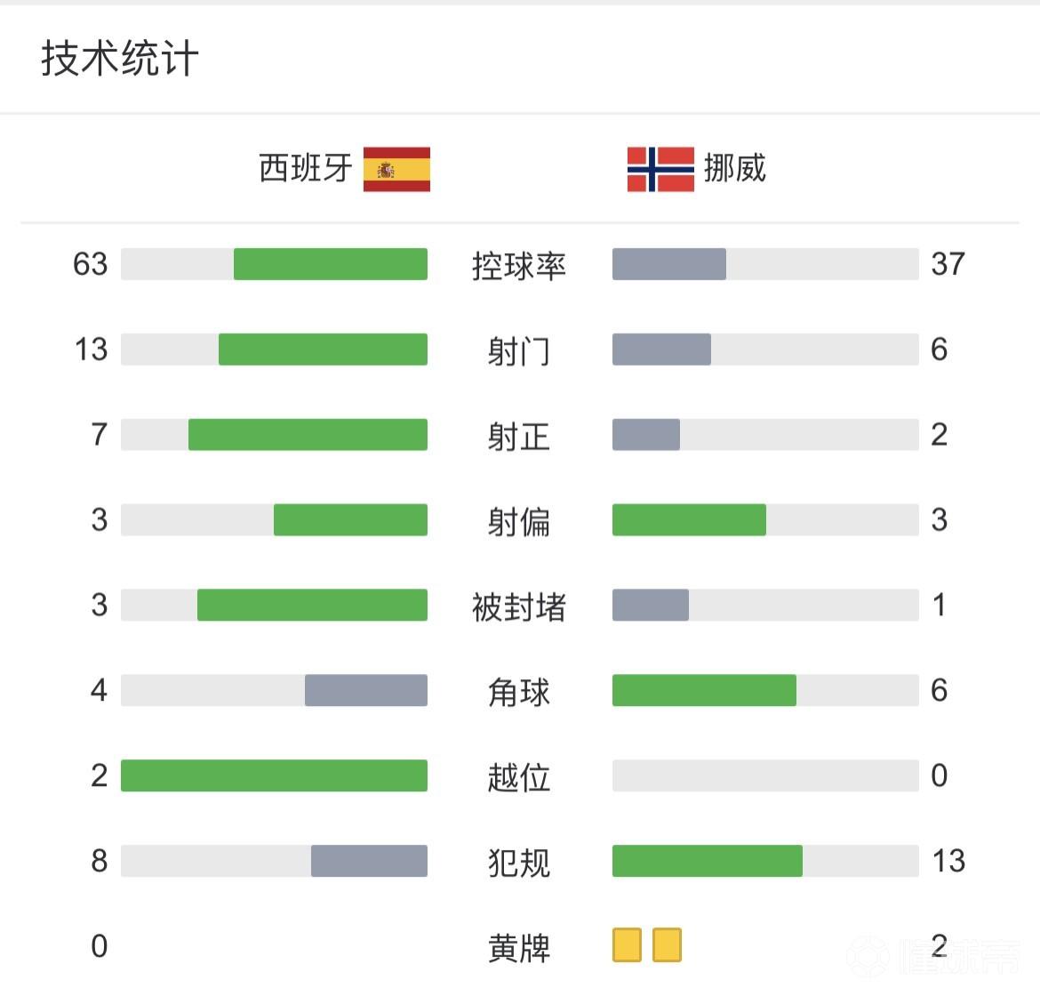 最终全场比赛结束,西班牙主场3-0挪威收获开门红。