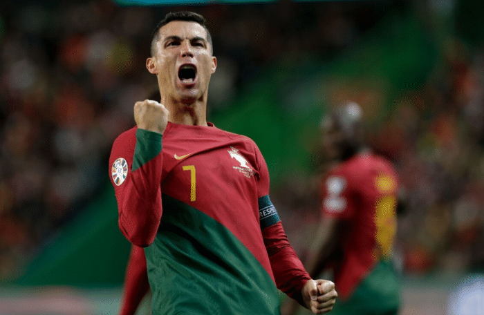短短12分钟完成点射和世界波,C罗一夜猛刷8大纪录,第一、C罗连续20年代表葡萄牙国家队完成破门;第二、C罗国家队进球总数涨至120球,甩开梅西的98球;第三、C罗国家队完成197次出场,足坛历史之最;第四、C罗职业生涯打进了830球;第五、C罗职业生涯完成60次任意球直接破门;第六、C罗罕见一周两次完成任意球世界波直接破门,最近一场代表利雅得胜利的比赛也完成了一粒任意球世界波;第七、C罗在欧洲杯预选赛36场完成33球3助;第八、C罗在国家队对47支不同球队完成破门。