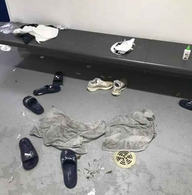 从《太阳报》曝光的照片来看,意大利更衣室里满是啤酒罐、香槟瓶、袜子、短裤、拖鞋和毛巾等杂物。