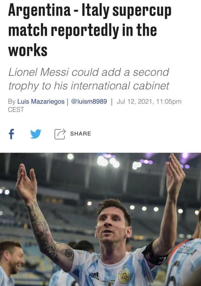 在此前结束的美洲杯决赛中,梅西率领阿根廷队1-0力克巴西队,时隔28年再次夺得美洲杯冠军,这也是梅西在阿根廷成年国家队的首个冠军。而在刚刚落幕的欧洲杯决赛中,意大利队则是通过点球大战击败英格兰,第二次捧起欧洲杯冠军。两大洲际冠军目前都处在最好的状态中,他们若能在正式大赛中公开较量一次,相信也会吊足球迷的胃口。