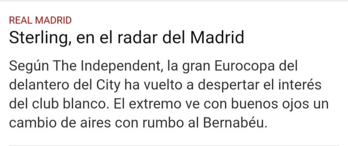 24直播网讯 目前为止,斯特林在本届欧洲杯中已经打进3球并有1次助攻,表现亮眼。据《阿斯报》援引《独立报》报道,他的出色发挥重新唤起了皇马的兴趣,并且这名球员也希望换个环境。