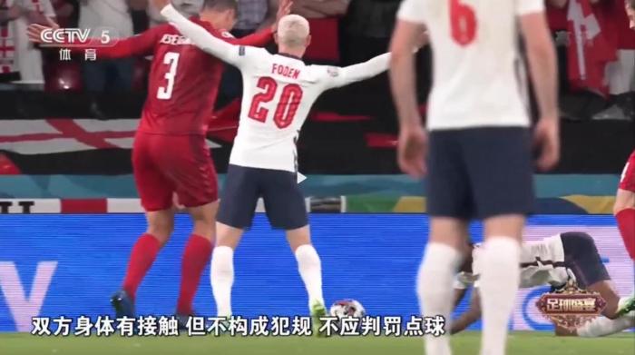 “通过回放来看,丹麦5号队员确实是和斯特林有接触,但是这个接触的力度是否构成犯规呢?我们可以通过其他角度看一看。