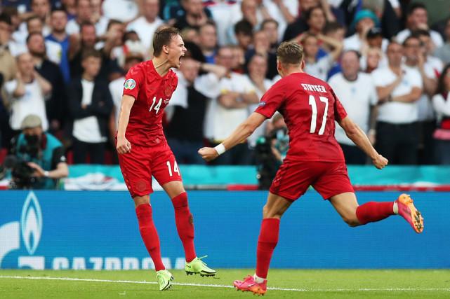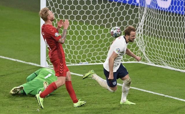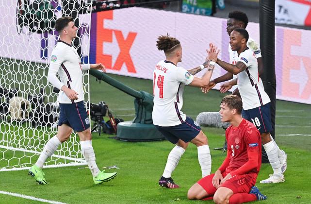 赛前英格兰本就是看好的大热门,但考虑到此前英格兰多次折戟大赛半决赛,因此本场比赛不少球迷还是为英格兰捏了一把汗。果不其然,上半场第30分钟,英格兰率先丢球,丹麦21岁新星达姆斯高任意球直接破门,攻破了皮克福德的球门,这也是英格兰本届欧洲杯的首粒失球。