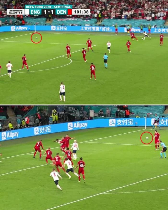比赛来到了第103分钟,英格兰发动进攻的时候,场内出现了两个球,丹麦球员提醒裁判,可是裁判并没有理睬。随后在禁区带球的斯特林摔倒,裁判并没有经过VAR回放,直接给出了点球的处罚,凭借着这个争议的点球,英格兰最终战胜了丹麦获得了胜利,赛后名宿温格和基恩都对于这个点球进行了批评,他们认为裁判盗窃了丹麦胜利的可能,不过一切已经无法挽回,丹麦的出局已经成为了事实。