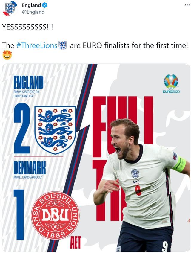 24直播网讯今天凌晨,英格兰在欧洲杯半决赛中淘汰丹麦,这是三狮军团队史首次杀入欧洲杯决赛。