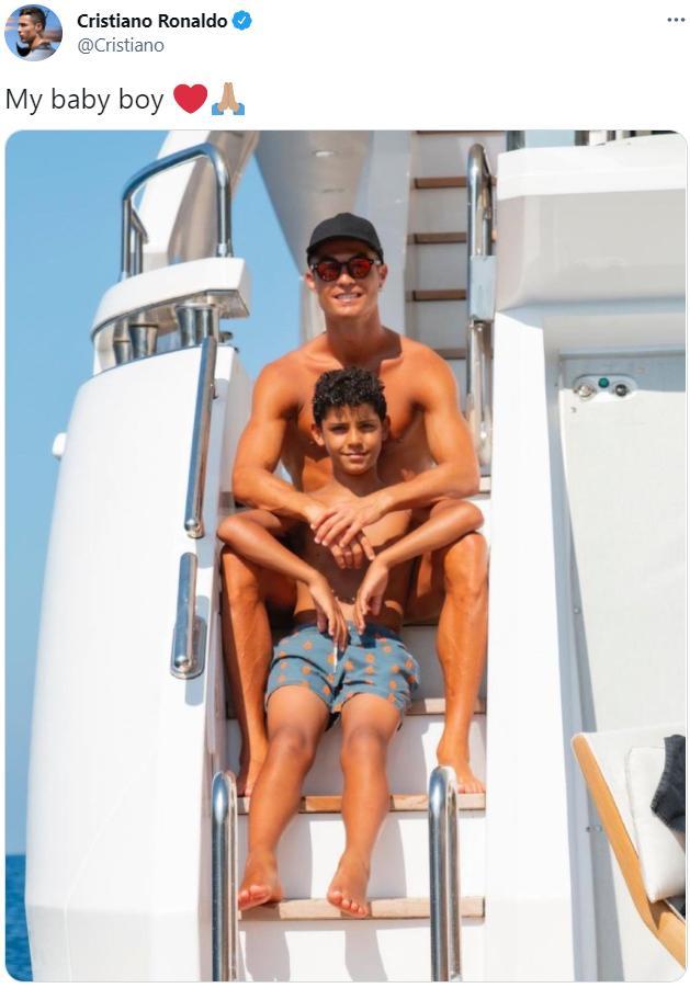 在葡萄牙被从欧洲杯淘汰后,C罗现在正在享受假期,近日他接连晒出自己度假的照片,而今天他又晒出自己与儿子的合照。