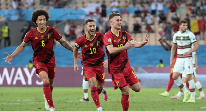 24直播网讯时间6月28日,欧洲杯1/8决赛继续进行,比利时队以1-0淘汰卫冕冠军葡萄牙队,这场比赛小阿扎尔在第41分钟打进远射世界波破门得分,下半场C罗带领卫冕冠军疯狂反扑,不过可惜没有能够取得进球,这样葡萄牙队遗憾出局,成绩定格在16强。比利时队晋级八强,他们接下来的对手是意大利队,这场巅峰对决将会在北京时间7月3日凌晨3点进行。