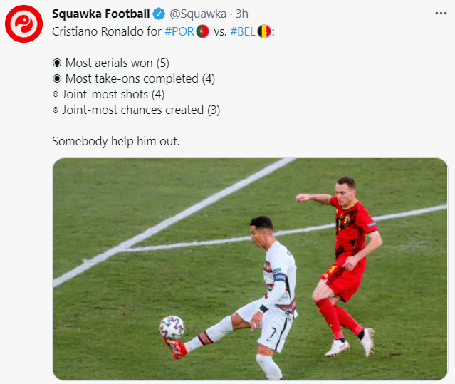 据统计,C罗本场比赛送出3次关键传球,5次过人4次成功,20次对抗11次成功,完成4脚射门,4项数据均为全场最高,但这仍不足以帮助自己的国家队进入欧洲杯八强。