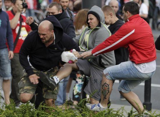 英国球迷,一向以人数众多,喜欢惹事为豪,在世界杯、欧洲杯,到处都有他们挑衅、斗殴的场景。不过在2016年,英国球迷遇到了硬茬子。在法国欧洲杯预选赛上,俄罗斯男足迎来了英国男足的挑战,这边球赛踢得火热,场下球迷的较量也是异常的火热。