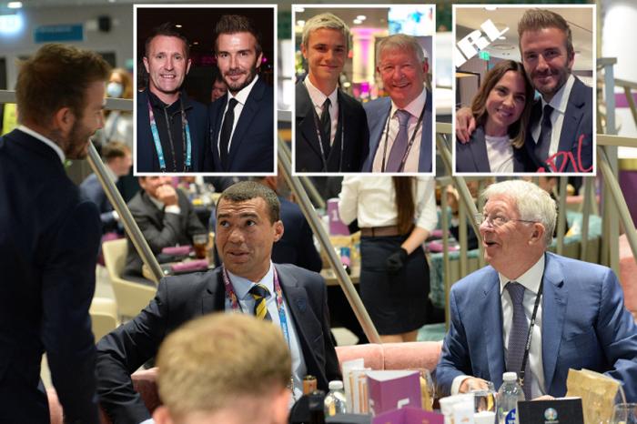 24直播网讯 英格兰和苏格兰在欧洲杯上闷战0-0收场,但曼联球迷却看到了令人惊喜的一幕,「万人迷」贝克汉姆和传奇主帅弗爵在温布利重聚,一起观看了这场英伦德比。