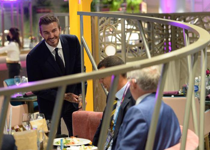 而这一次,小贝带着18岁的儿子罗密欧,西装笔挺地来看球,遇到了不少老朋友,其中包括其前洛杉矶银河队友罗比·基恩。