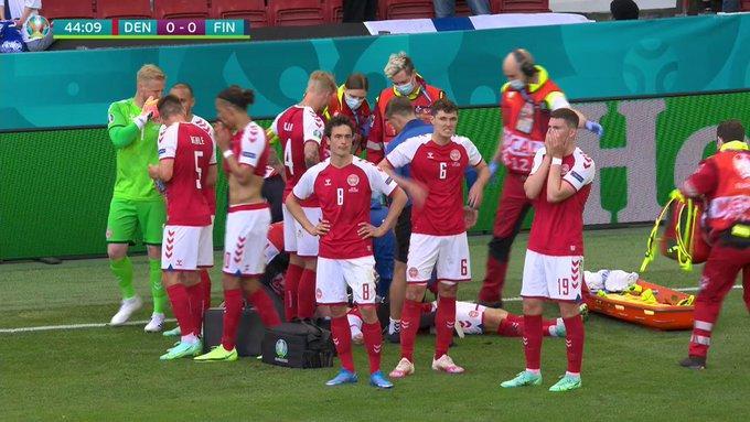 官方: 比赛中出现紧急情况, 丹麦vs芬兰比赛暂停