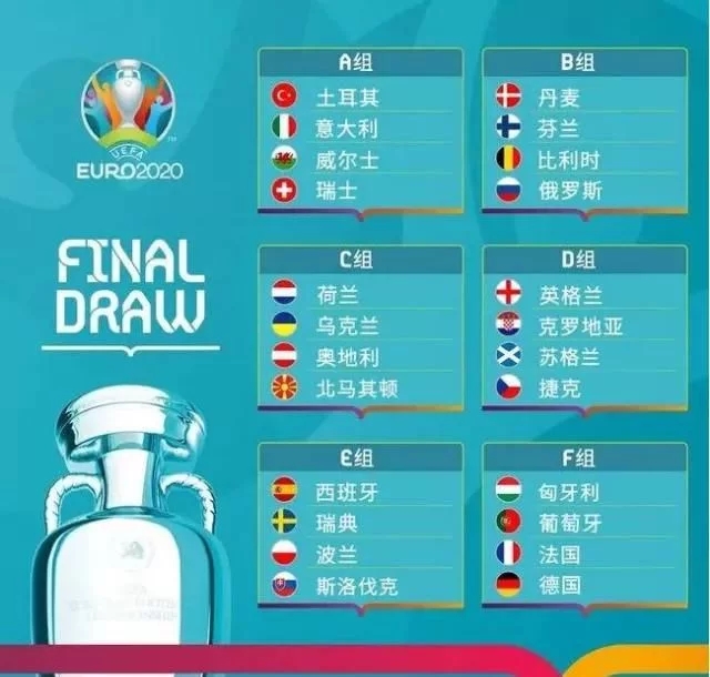 2020年欧洲杯24强分组:(点击球队可查看各国球队巡礼)