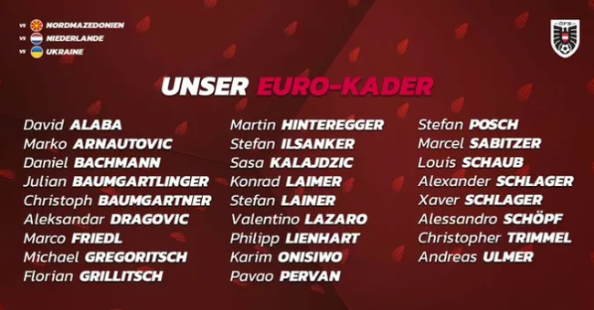 查看更多:奥地利队欧洲杯26人大名单大名单及赛程一览