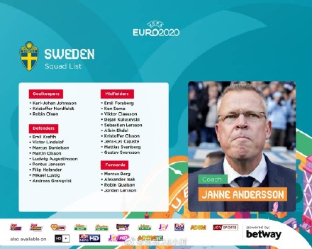 瑞典队欧洲杯26人球员大名单及赛程一览