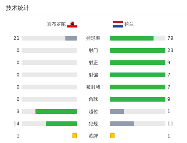 关键事件: 第10分钟,费尔曼突入禁区后分球,斯滕斯迎球左脚低射破门!荷兰1-0直布罗陀↓