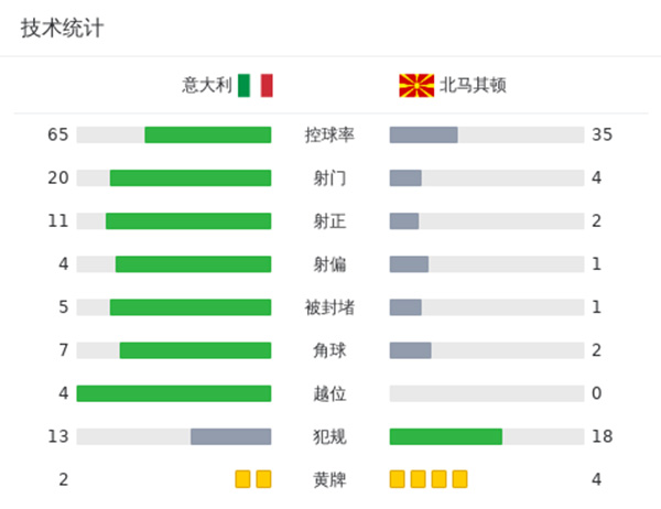 最终,意大利5-2战胜北马其顿。