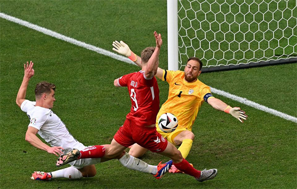 24直播网讯 在北京时间6月17日凌晨结束的欧洲杯C组首轮一场焦点战中,丹麦1-1被斯洛文尼亚逼平,无缘开门红。而效力于曼联的丹麦中锋霍伊伦德,在自己的个人欧洲杯首秀表现欠佳,错失良机的他,早早被换下。