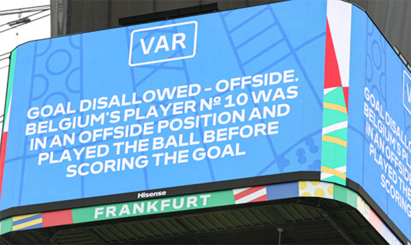 之后的卢卡库更是两度破门,但都被吹掉,一次是因为自己越位,一次是因为助攻的队友手球犯规再现。所以两次都收卢卡库在进球之后庆祝,或者抱着球回跑,无奈进球无效。这也是创造了一项尴尬的纪录:卢卡库成为欧洲杯历史上第一位单场2球被VAR吹掉的球员。